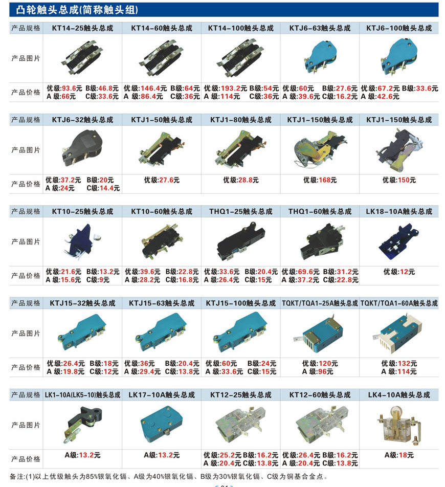 KT10、KT14、KTJ6、KTJ15、KTJ1凸輪控制器系列觸頭