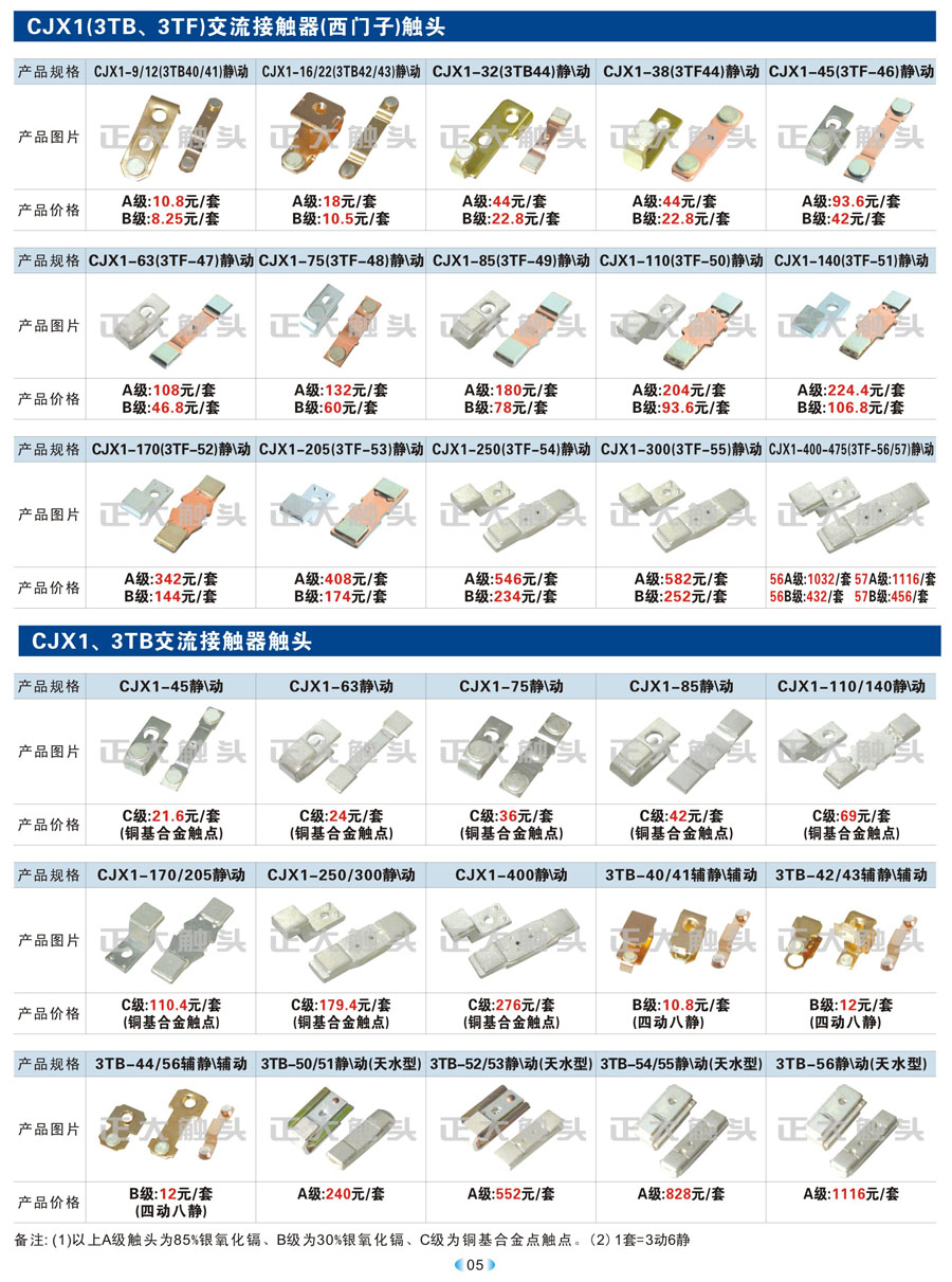 CJX1(3TB、3TF)交流接觸器(西門子)觸頭