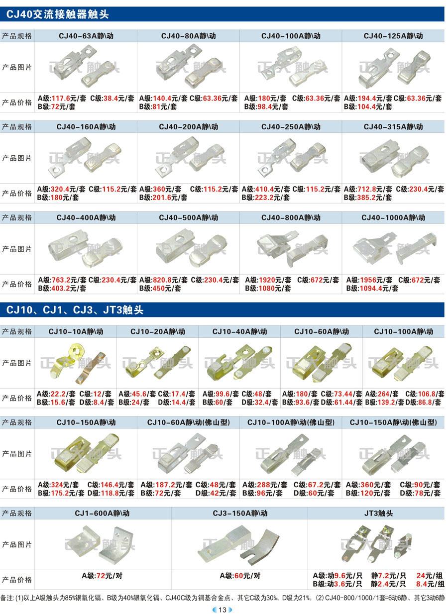CJ40、CJ10、CJ1、CJ3、JT3觸頭