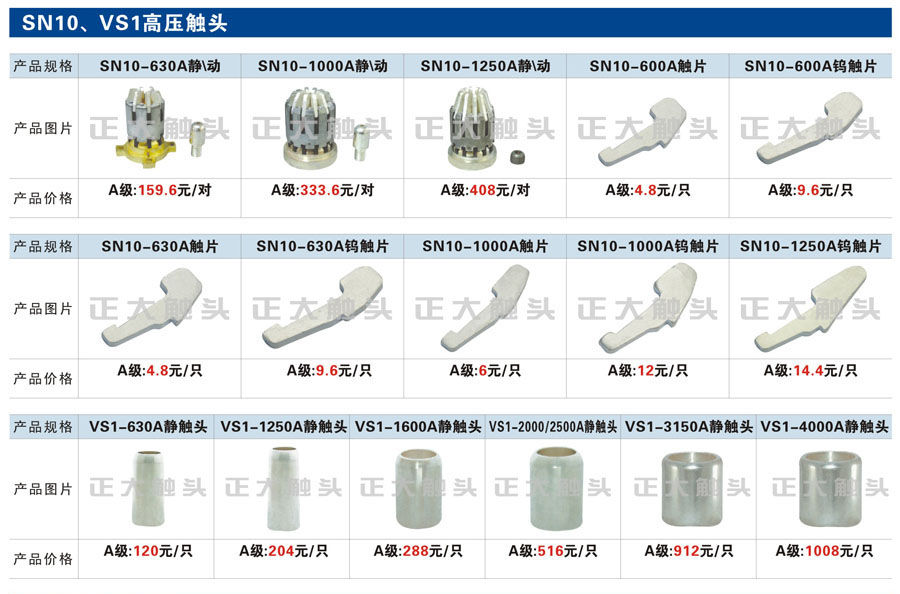 二、高壓觸頭產(chǎn)品規(guī)格及圖片(備注:以下配件價(jià)格不完全正確,型號(hào)及規(guī)格需報(bào)價(jià)咨詢銷售部)