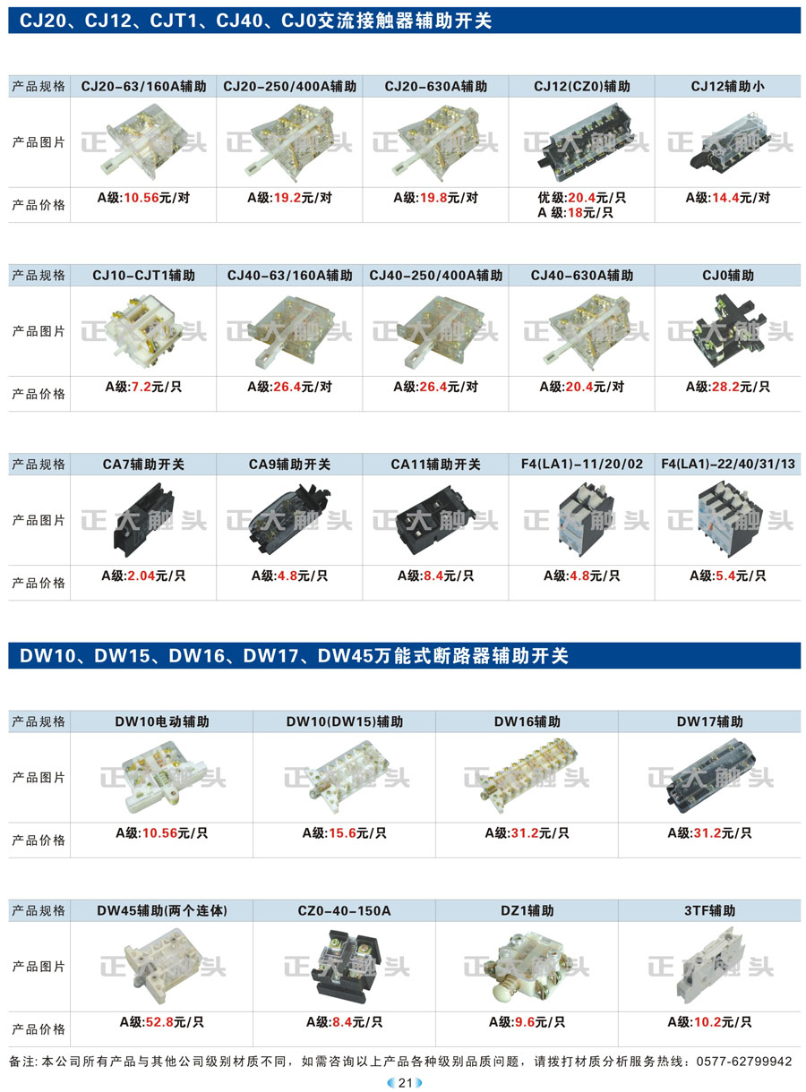 CJ20、CJ12、CJT1、CJ40、CJ0、DW10、DW15、DW16、DW17、DW45輔助開關(guān)