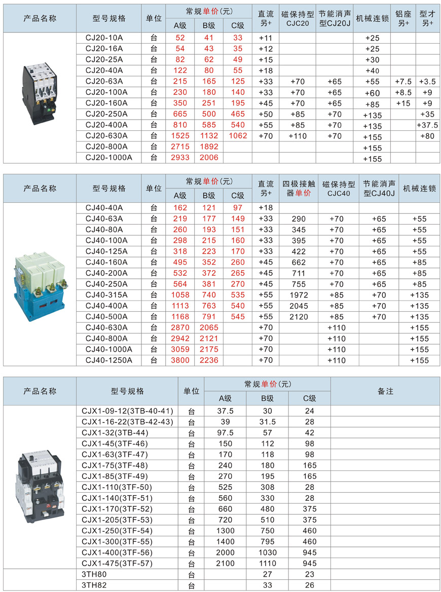 3TF、CJT1、CJX2、CJX2交流接觸器