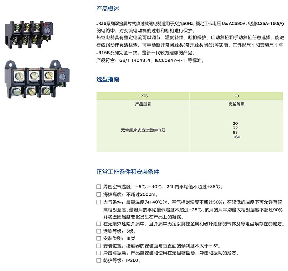 JR36系列熱過(guò)載繼電器