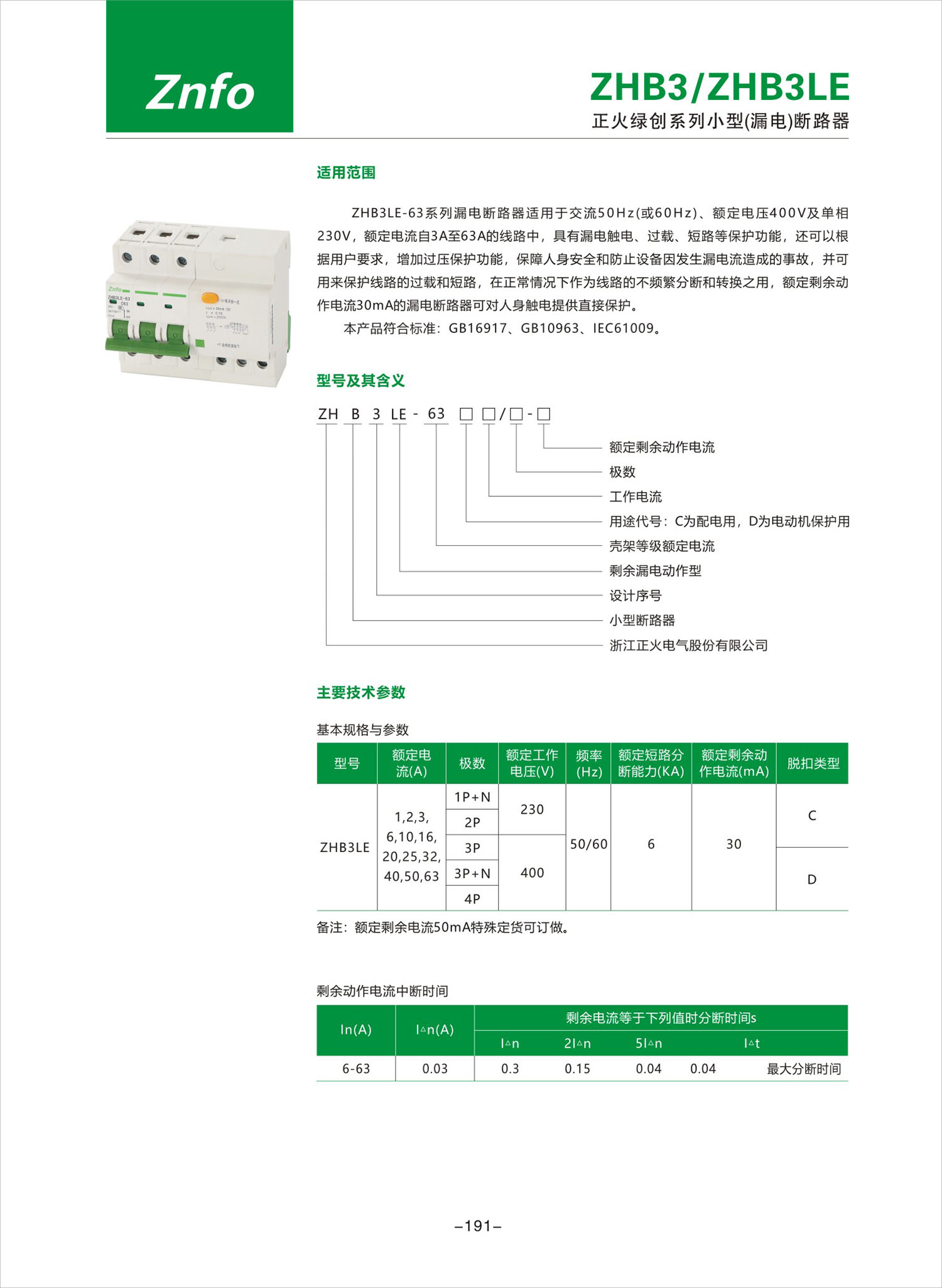 ZHB3/ZHB3LE系列小型(漏電)斷路器產(chǎn)品說明書